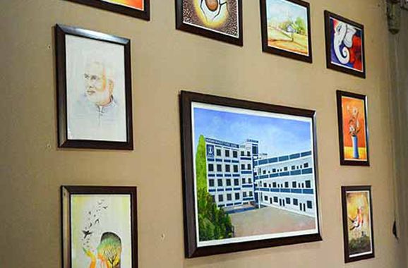 Wall of Art The Wall of Art at our school beautifully displays students’ creative artwork and framed paintings, creating an inspiring visual environment. This artistic corner reflects creativity, imagination, and a culture that encourages artistic expression within the school campus.